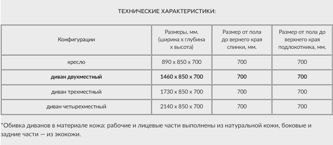 Габариты двухместного дивана Алекто 1460х850х700.