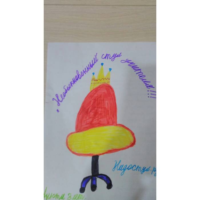 На рисунке необходимо подписать тему и "Надостул.РУ", например, "Необыкновенный стул учителя!!! Надостул.РУ "